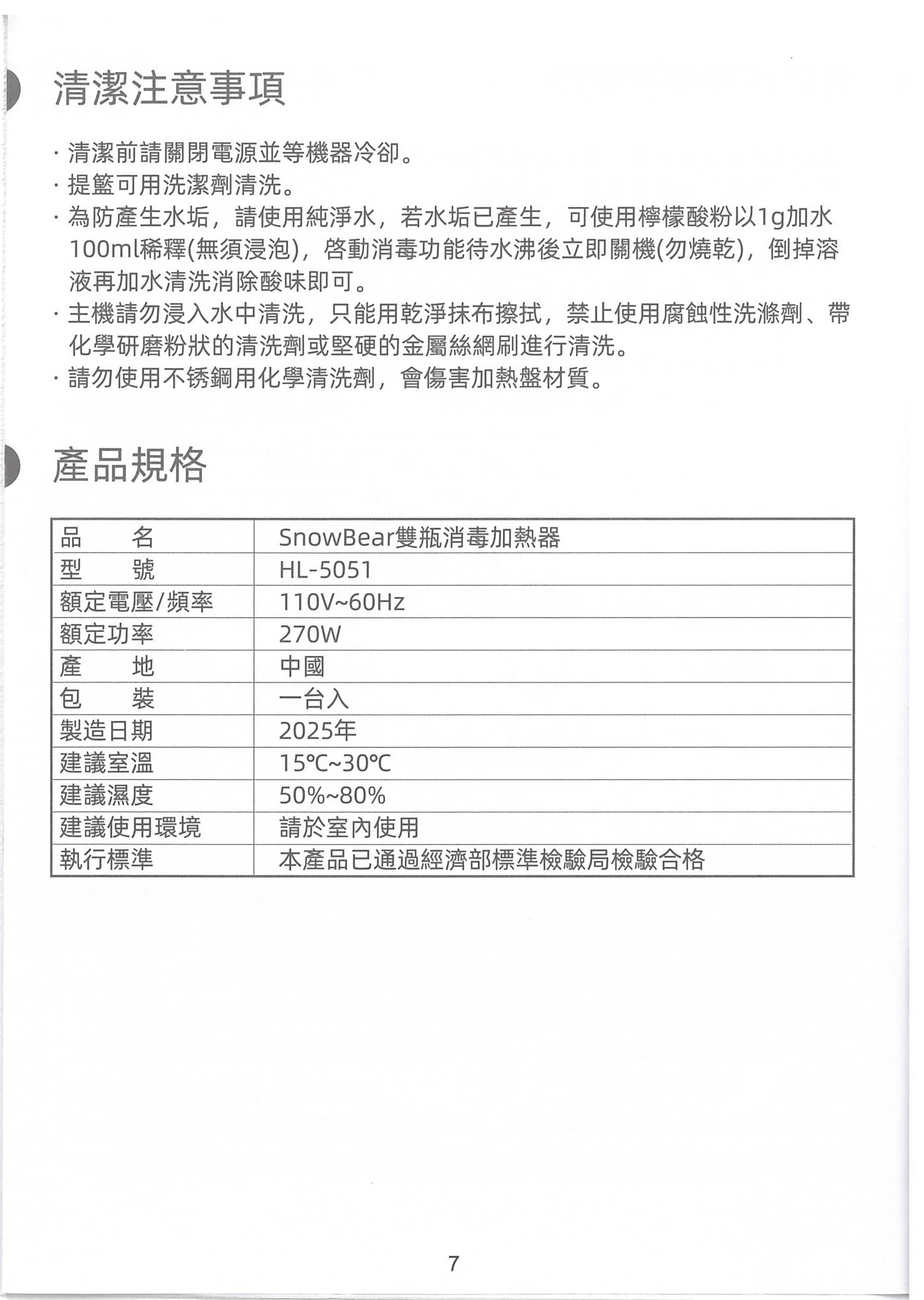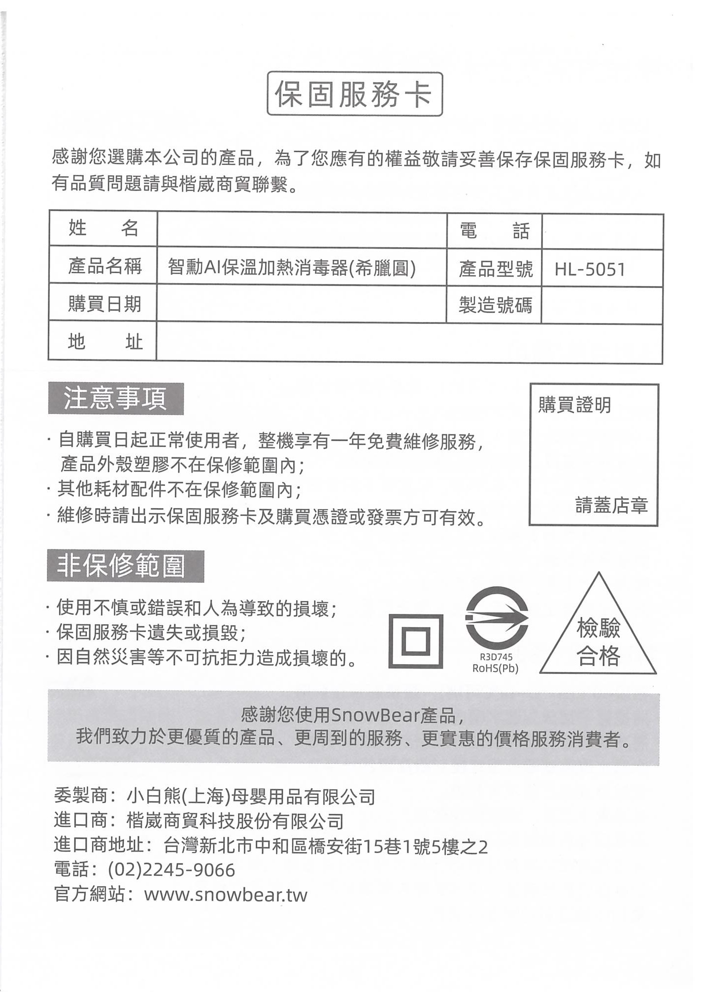 智勳AI保溫加熱消毒器-希臘圓 HL-5051 說明書