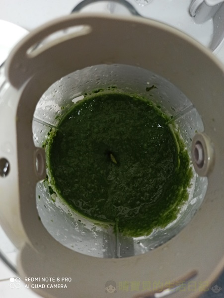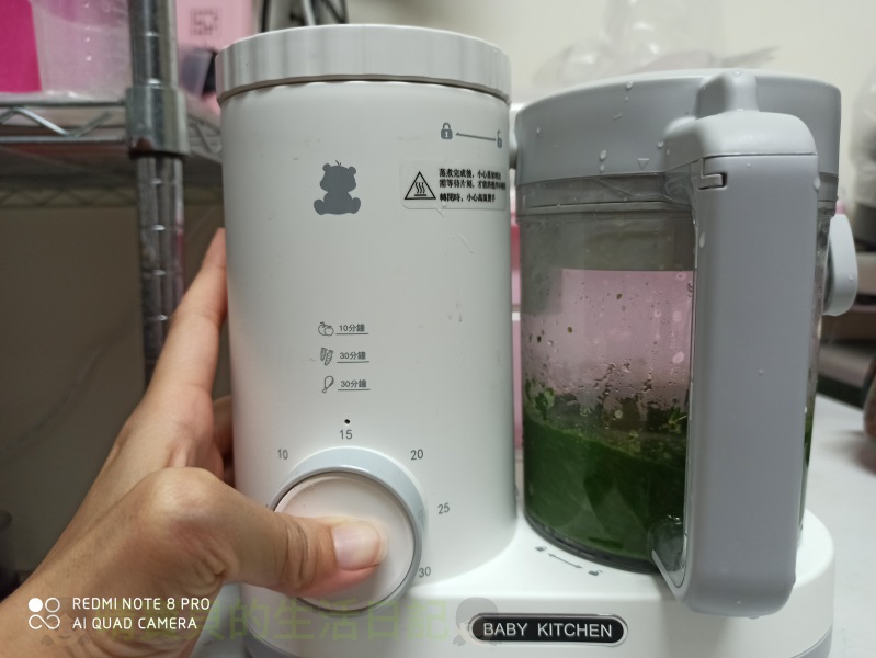 將兩種材料蒸煮熟了後,放進韓國小白熊食物調理機內,打至濃稠狀