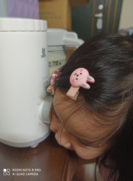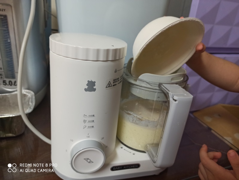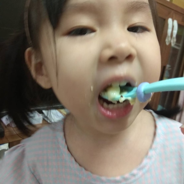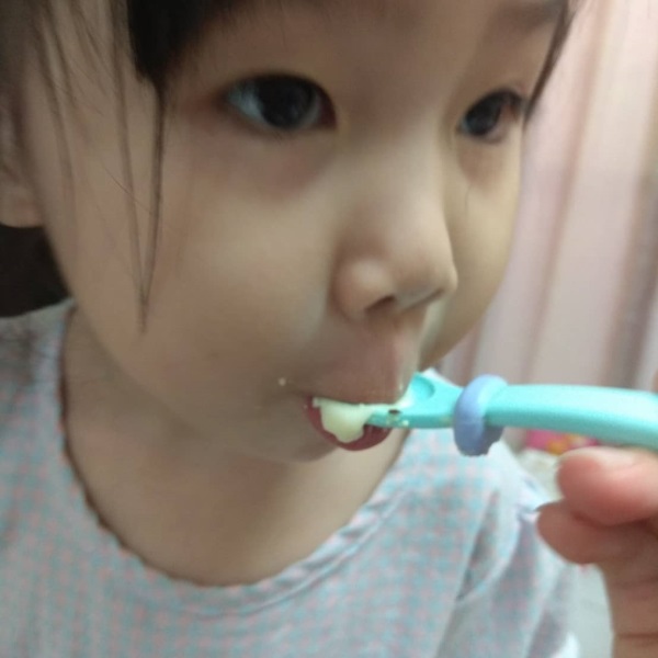 按下按鈕均勻攪拌,沒想到調皮的晴晴突然突發奇想的用她的嘴邊肉去按調理機按鈕,而且居然會攪拌....