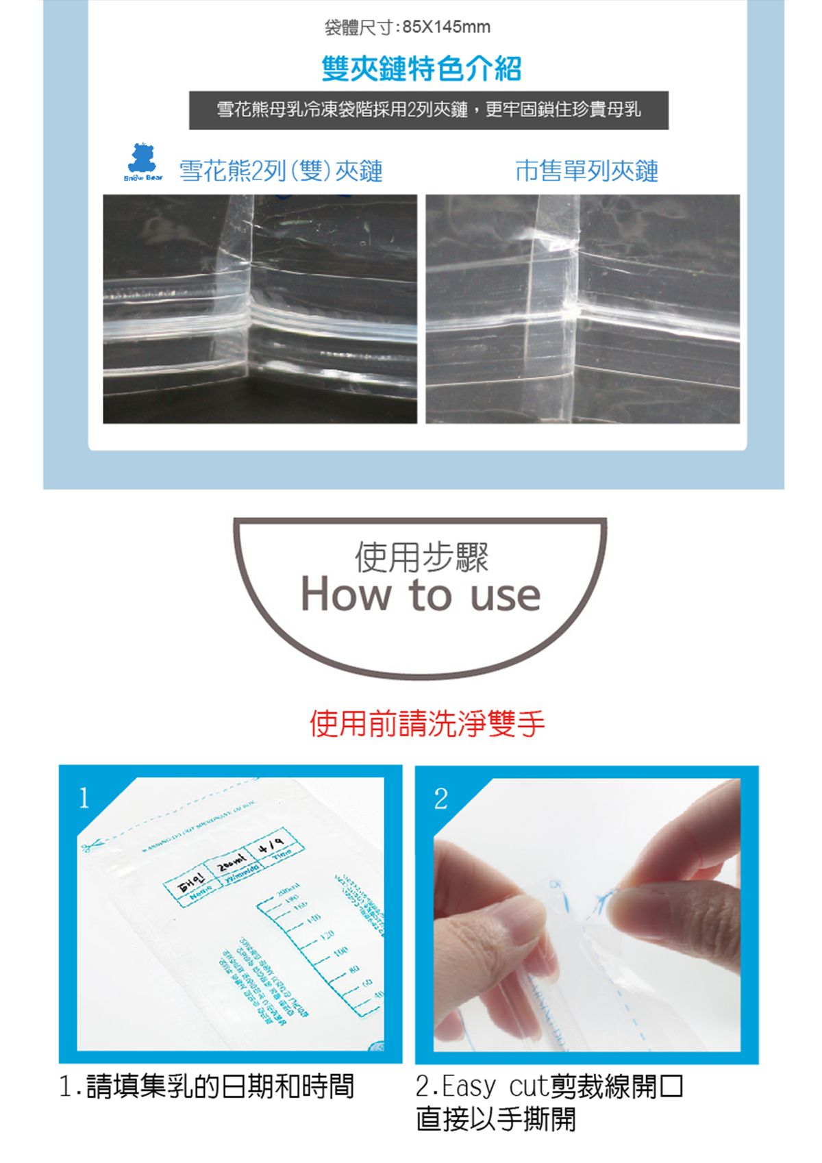 【SnowBear 小白熊】母乳儲存袋120ml