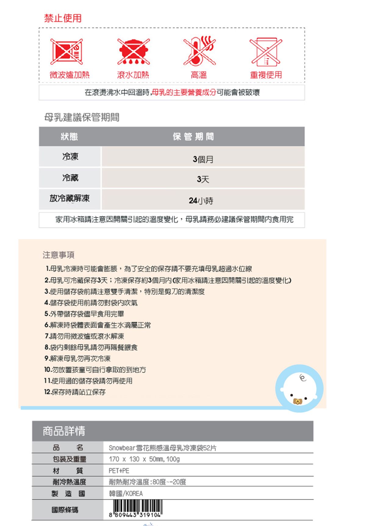 SnowBear 感溫母乳冷凍袋200ml/52入