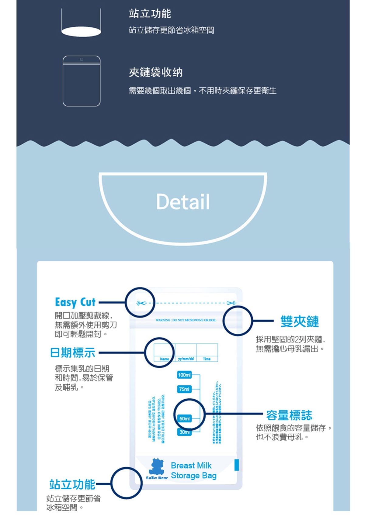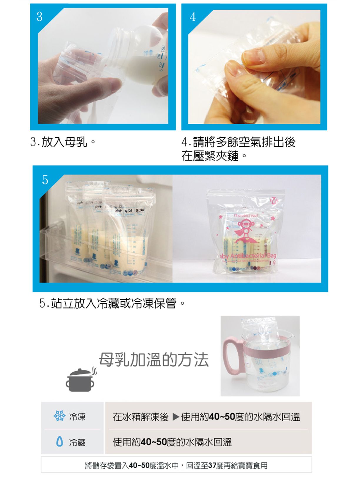 母乳袋可站立,節省冰箱空間